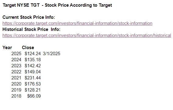 On May 24, 2023 Target issued a statement on its 2023 Pride Collection. A large scale campaign against Target pursued. From 2023 Target Stock Price went from On February 20, 2025 Florida AG sued Target for misleading shareholders over the risk of the LGBTQIA+ collection, etc.