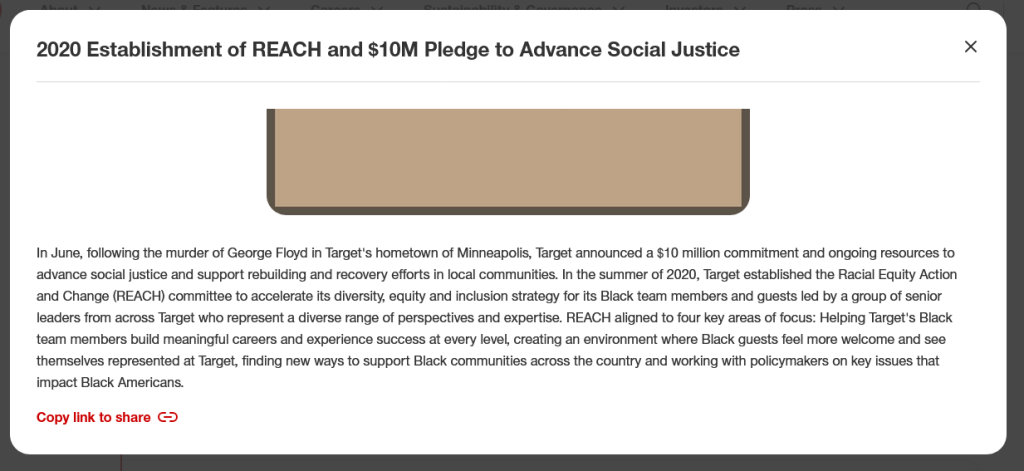 Target DEI Analysis By/At Diversity.Com – says Target paid 1 billion to blacks noted in “2022 Diversity Report” but I could not find that in any available reports: 2022 Workforce Diversity Report or 2022 ESG Report