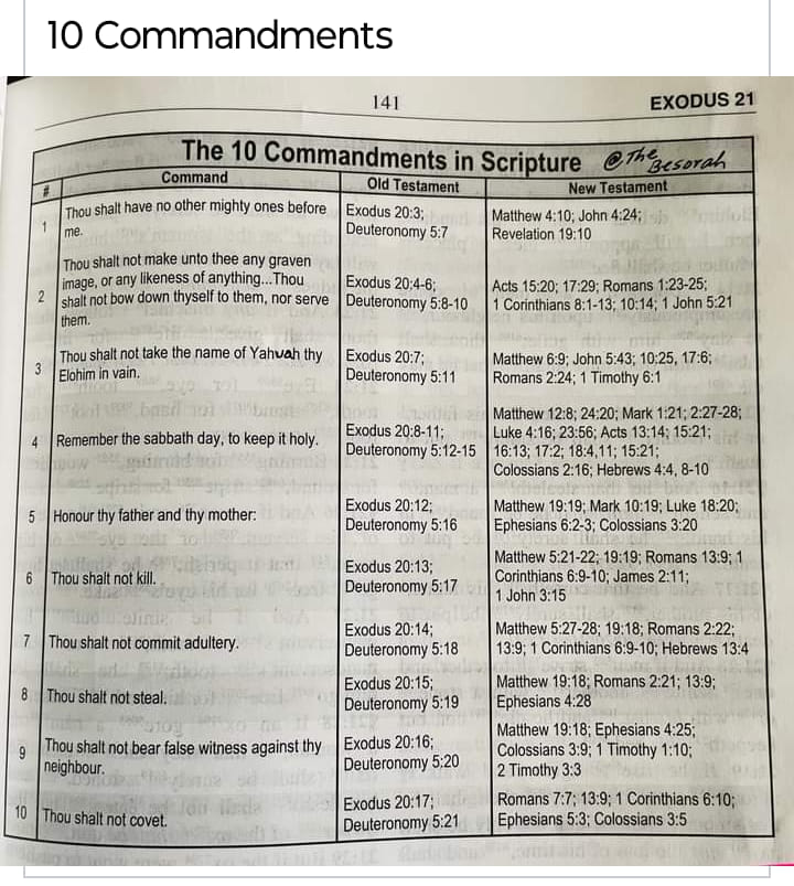 Old Testament Ten Commandments Scriptures and New Testament Scriptures Correspondence Chart
